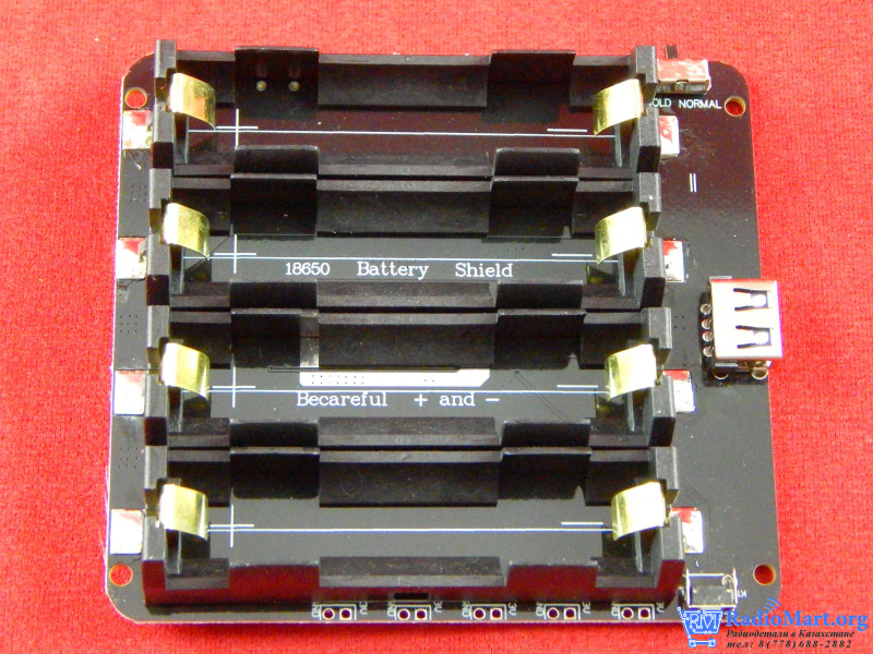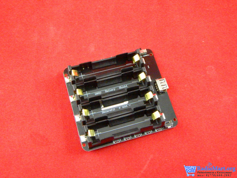 Модуль резервного питания Battery Shield V9 предназначен для сборки автономного источника питания на основе четырёх литий-ионных аккумуляторов 18650. При подключении внешнего питания через порт Micro-USB или USB-Type-C происходит зарядка аккумуляторов; при отключении внешнего питания автоматически осуществляется питание нагрузки от аккумуляторов. Модуль оснащён режимами работы «авто» и «постоянно включено» (HOLD/NORMAL), встроенными защитами от переразряда и перезаряда.