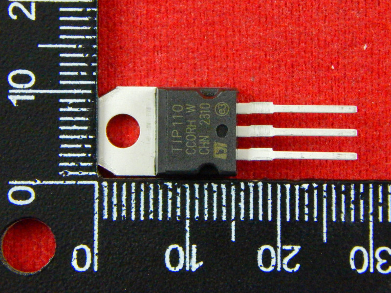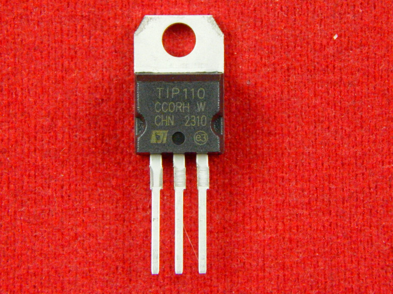TIP110 — это кремниевый NPN-транзистор Дарлингтона средней мощности, выпускаемый в корпусе TO-220AB. Главная особенность: очень большой коэффициент усиления по току hFE > 1000 благодаря конфигурации Дарлингтона (два транзистора в одном кристалле).