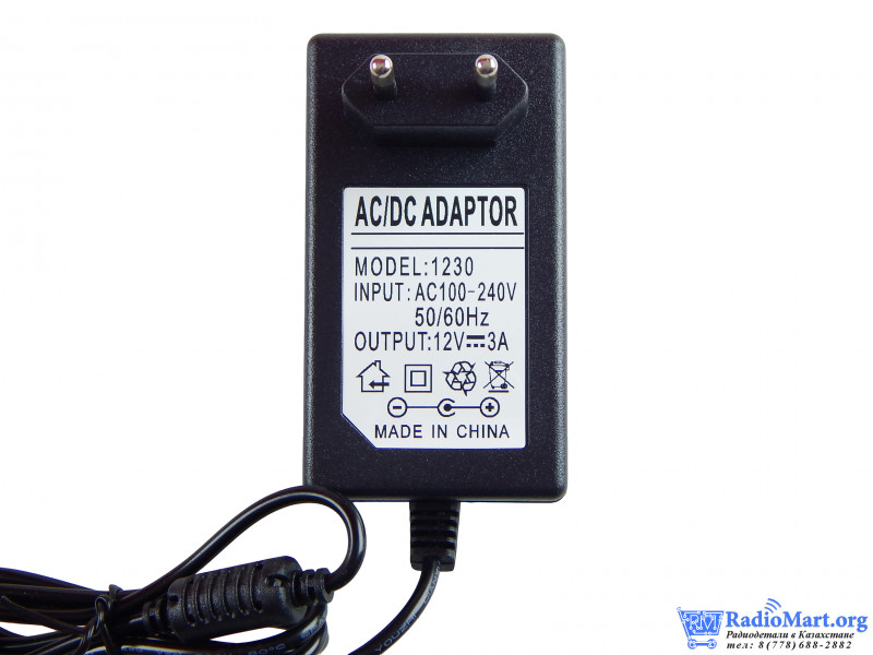 Сетевой импульсный адаптер питания 12V 3A предназначен для питания устройств с постоянным напряжением 12В.