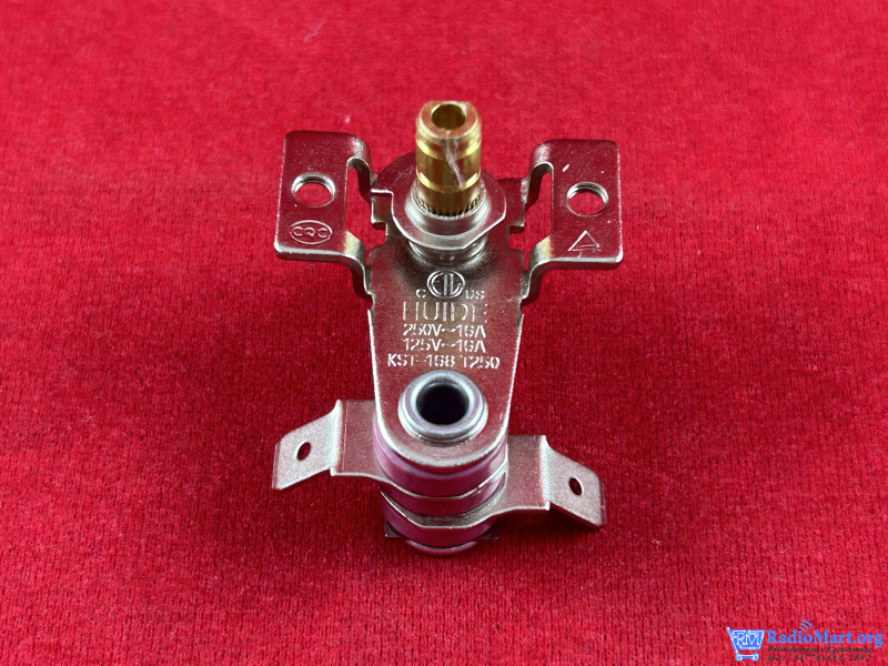 Термостат KST-168 представляет собой биметаллический переключатель (температурный выключатель) с регулируемой температурой срабатывания. Модель рассчитана на рабочий режим до температуры 250 °C (маркировка T250) и рассчитана на электрическую нагрузку до 16 А при напряжении 250 В (или 125 В) переменного тока. Устройство применяется для контроля температуры в бытовых и промышленных приборах, таких как печи, духовки, нагревательные элементы, бытовая техника.
