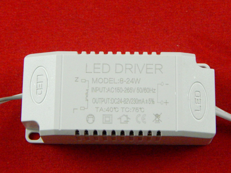 LED драйвер 8-24Вт, 230мА предназначен для мощных светодиодов, таких как LED Emitter 1Вт. Имеется защита от короткого замыкания, защита от обрыва в цепи, защита от перегрева.