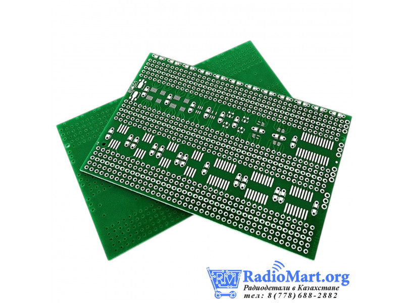Универсальная плата прототипирования 7×11 см предназначена для сборки электронных схем с использованием SMD-компонентов (поверхностного монтажа).