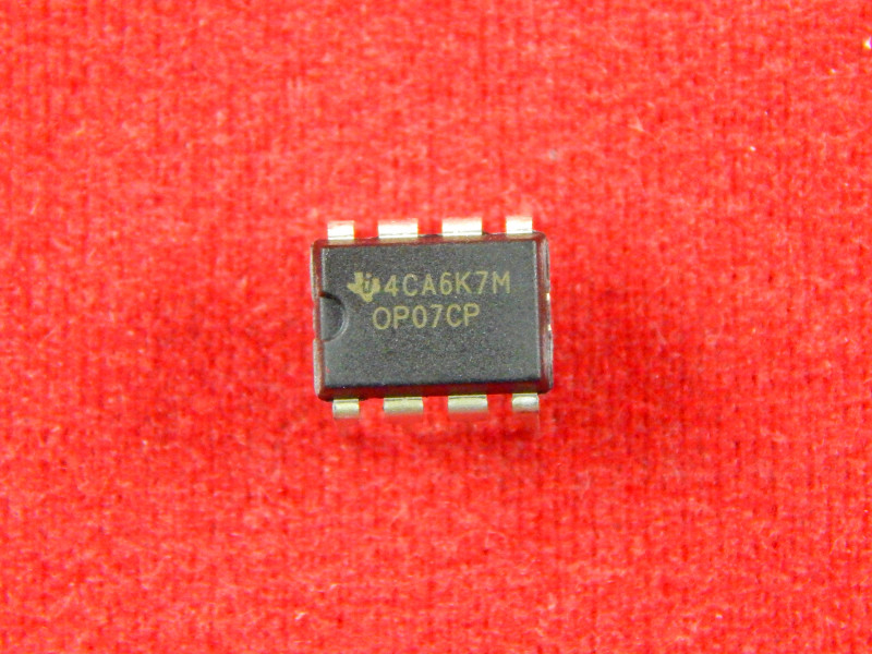 Микросхема OP07CP - это прецизионный операционный усилитель в корпусе DIP-8. Имеет низкий уровнем шума, высокое входное сопротивление и большой коэффициент ослабления синфазного сигнала. OP07CP изготовлен на биполярных транзисторах и рекомендуется для построения малошумящих схем усиления слабых сигналов.