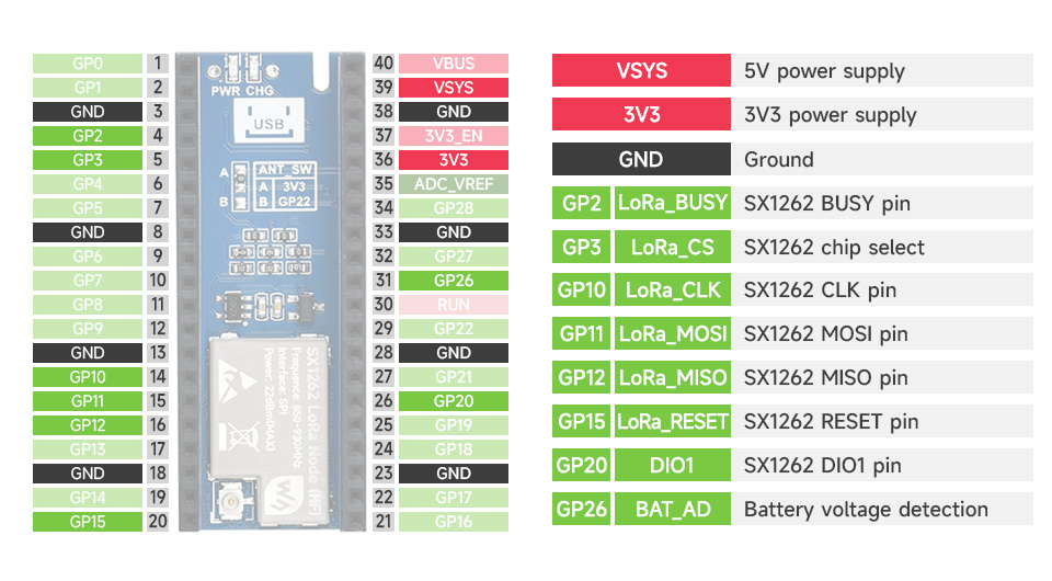 Модуль Pico LoRa SX1262-433M разработан компанией Waveshare как расширение для микроконтроллера Raspberry Pi Pico. Он основан на радиочипе Semtech SX1262, который поддерживает протоколы LoRa и LoRaWAN. Модуль поддерживает частотный диапазон 433 МГц, отличается высокой чувствительностью и дальностью связи при низком энергопотреблении.Подключение к Pico выполняется через интерфейс SPI (пины NSS, SCK, MOSI, MISO, BUSY, DIO1, RESET). Устройство питается от 5 В через Pico, при этом логический уровень сигналов — 3.3 В.Модуль может использоваться для построения сетей IoT, телеметрии, систем мониторинга и датчиков «умного» дома или промышленной автоматики. Поддерживается программирование с помощью C/C++ SDK и MicroPython, для которых Waveshare предоставляет примеры и библиотеки.