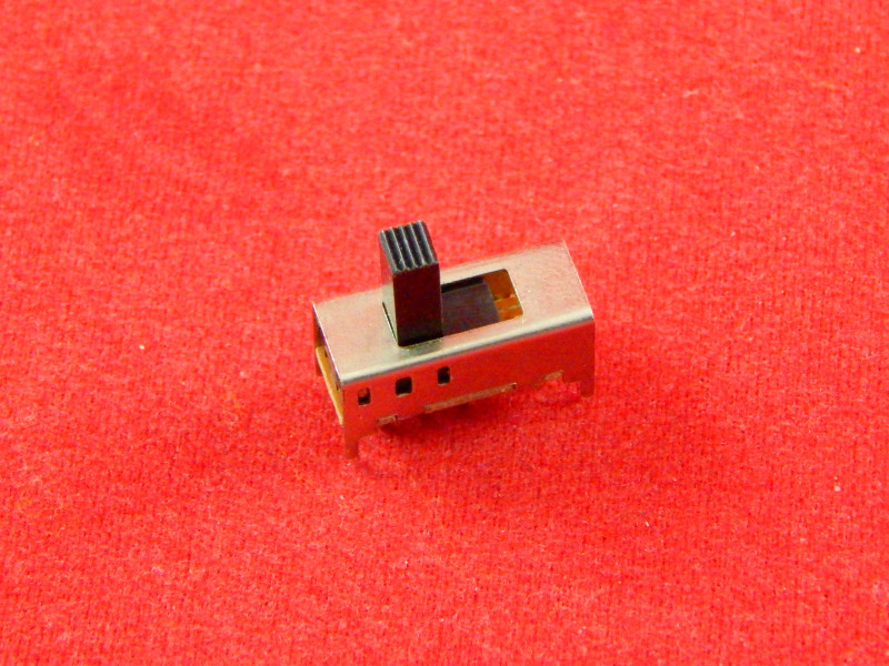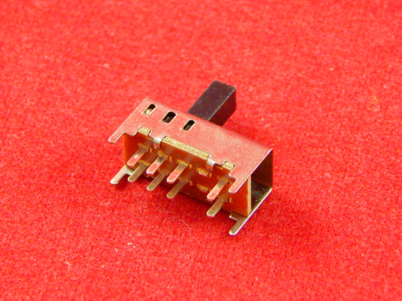 Переключатель SS-23F10 — это миниатюрный ползунковый переключатель (3 положения, 8 контактов) с вертикальным монтажом, рассчитанный на работу при низком токе и напряжении.